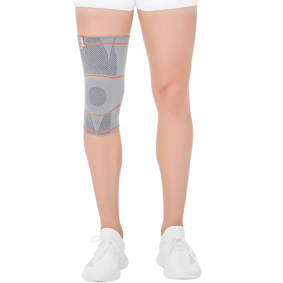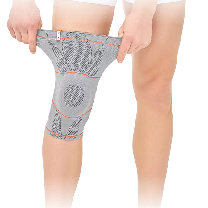 вязко-эластичная вставка оказывает дополнительное массажное воздействие, препятствует появлению или усилению отёка, стабилизирует и снимает давление с коленной чашечки;